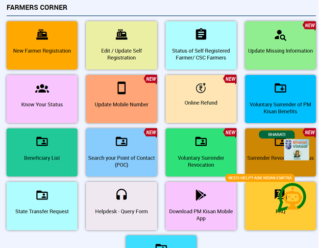 - On the homepage, look for the e-KYC option under the Farmers Corner section. Click on it.