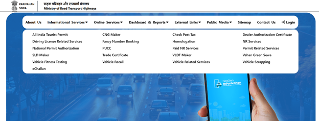 - Visit the Parivahan Website: Head to the official website of Parivahan.