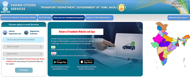 Visit the Official Website: Navigate to the official Parivahan Sewa website and input the registration number of your vehicle.
