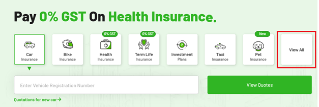 Once chosen, you will be taken to the respective page. You can use the on-screen widget and enter your vehicle number and click on “View Quotes”. This will directly take you to the commercial insurance buying process of SMC Insurance.