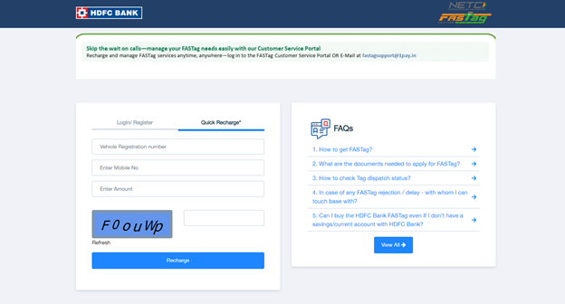 - Note: the new mobile number must not be linked to any other HDFC FASTag wallet.