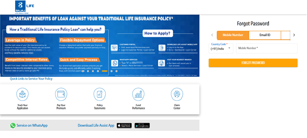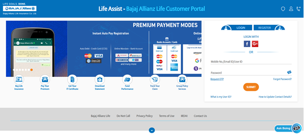 Go to the official Bajaj Allianz Life Insurance website and open the customer login section. You will see options meant for existing customers.