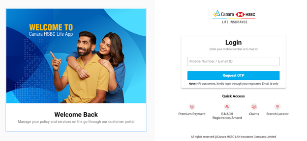 - Start by opening the official customer login page of Canara HSBC Life Insurance.