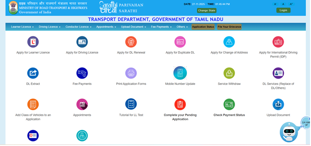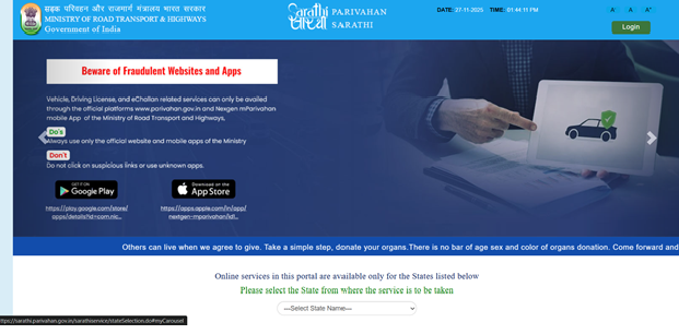 - Visit Parivahan Sewa portal and select your state.